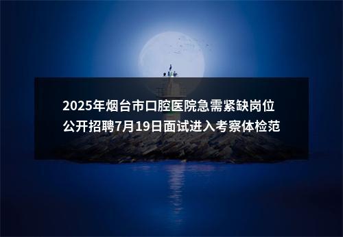 原标题:关于公布2025年烟台市口腔医院急需紧缺岗位公开招聘7月19日面试进入考察体检范围人员名单的通知